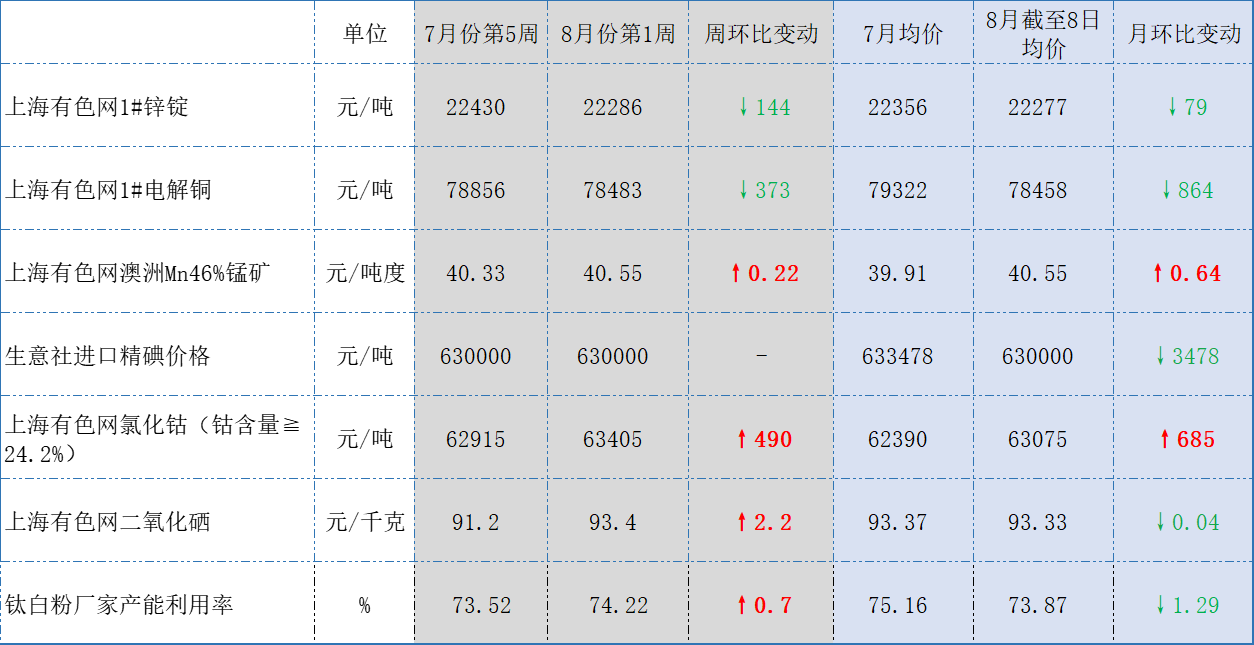 (1)本周一水硫酸锌样本厂家开工率94%,环比上涨11%,产能利用率73%,环比上涨5%,在主流厂家订单充足背景下,本周报价较上周上涨50-100元/吨不等。